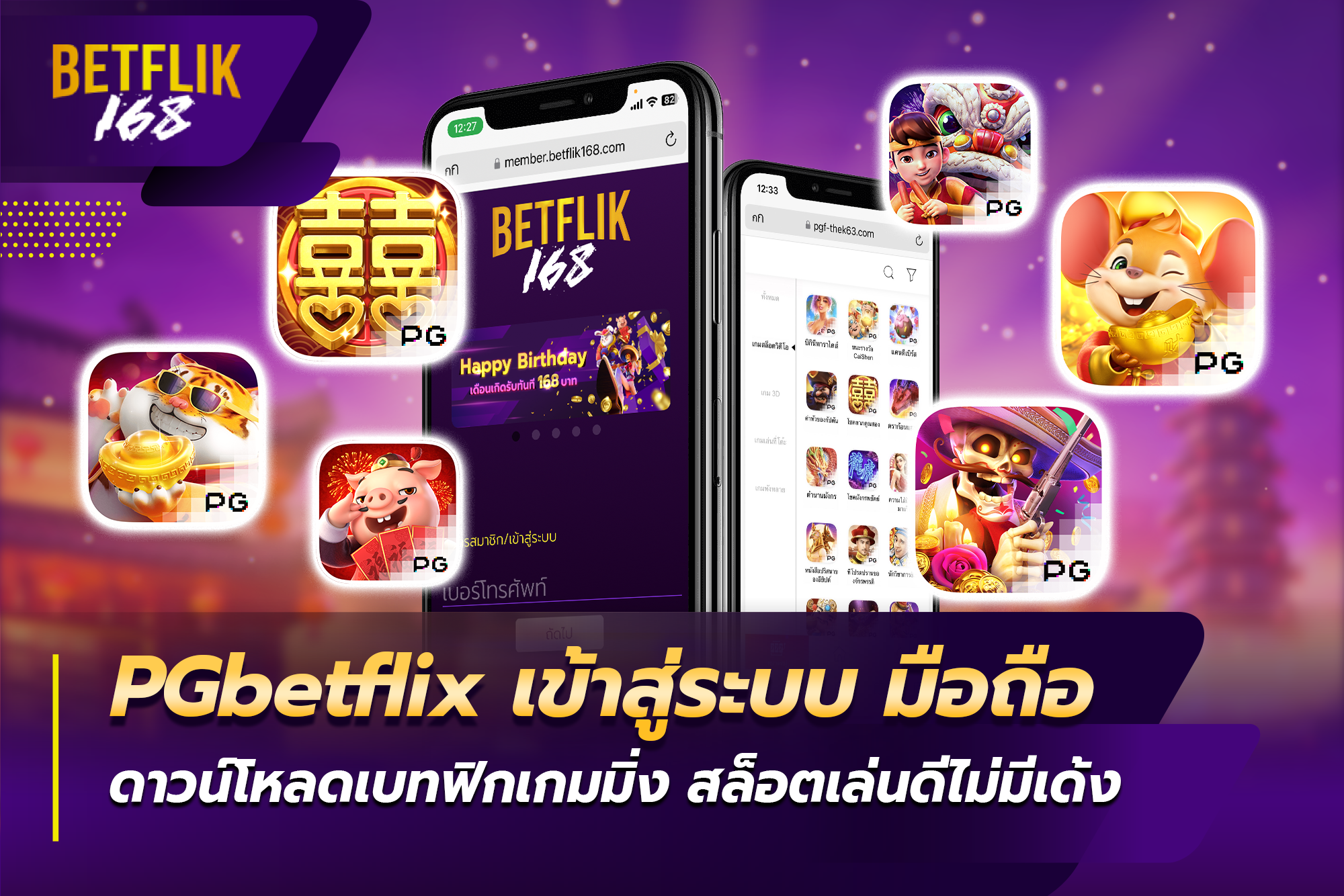 ดาวน์โหลดแอพ สมัครล็อคอินเข้าใช้งาน PGbetflix เข้าสู่ระบบ เว็บเดิมพันออนไลน์ใหม่ล่าสุด ที่มีเกมสล็อตPGเบทฟิก ให้เลือกเล่นมากมาย พร้อมบริการพนัน ทำเงินบนมือถือครบวงจร ไม่ว่าจะเป็นบริการเกมสล็อตแมชชีน บริการคาสิโนสด เปิดโต๊ะคาสิโนลุ้นไพ่ป๊อกเด้ง โป๊กเกอร์ บาคาร่า เดิมพันกีฬาออนไลน์ ทุกประเภท เช็คผลบอลสด ดูตารางราคาบอลทุกลีกล่วงหน้า ใช้บริการผ่านเว็บ หรือ ดาวน์โหลดแอพ BETFLIK เล่นเกมทำกำไร สร้างรายได้เสริม จากเกมออนไลน์ผ่านมือถือ ก็สามารถทำได้หมด ครบทุกช่องทาง ที่นี่เป็นแหล่งรวมความบันเทิงยุคใหม่ มอบความสนุก มันส์ บนความแปลกใหม่ที่หลากหลายกว่าใคร พร้อมส่งตรงเกมหมุนวงล้อคุณภาพ จากค่ายดังชั้นนำ อย่าง PG SLOT, PP SLOT, Print Studios, Wazdan